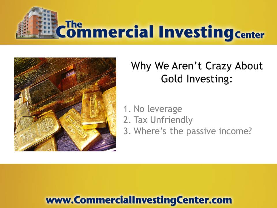 The price of gold today is $1,712.82 USD. When considering how this precious metal has surged in value over the past decade (it was below $500 in 2001), it’s no wonder millions of Wall Street investors have begun to put a bit of gold in their portfolio, while millions of others remain sitting on the fence, contemplating doing the same. Commercial Investing Center founder, Jason Hartman, would like to remind everyone that while gold is certainly a better bet than Wall Street stocks, bonds, and mutual funds, there are a few basic reasons that keep it solidly inferior to income property investing. We’re going to talk about one of them today.